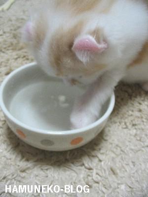 (お水も一人で飲むようになりました♪ちなみにゆゑのお耳はこんなかんじ~♪)