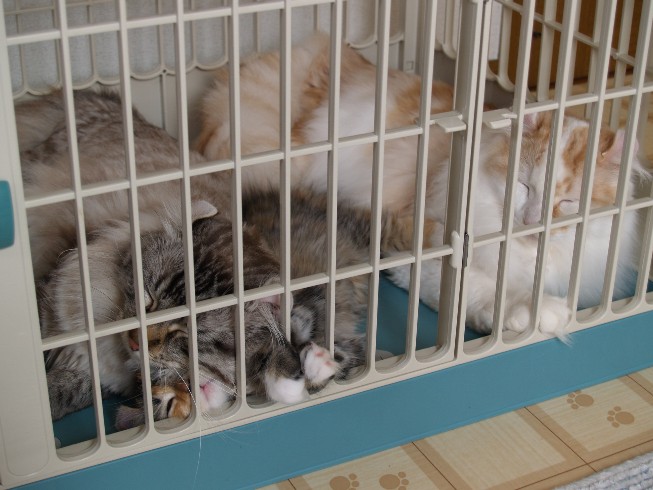 というわけで、朝から猫部屋もいつものお掃除に加え、拭き掃除も追加です。