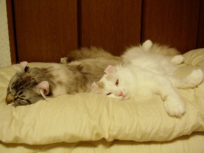 寝てるハユのそばには大抵サスケが(右の白いのはサスケなの(^^;))