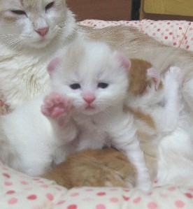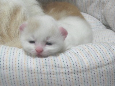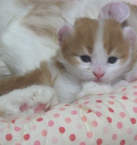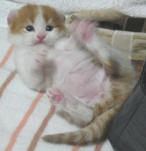 苗「産まれて10日くらいかな。一丁前にお耳も反ってます。ただ、しょぼかったんですの